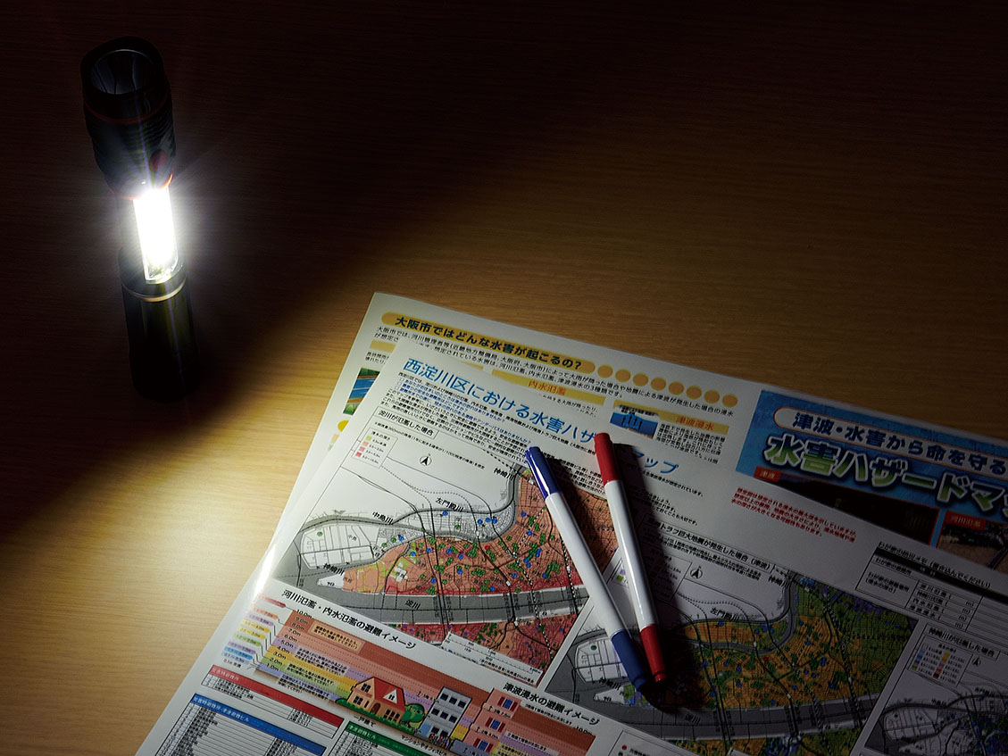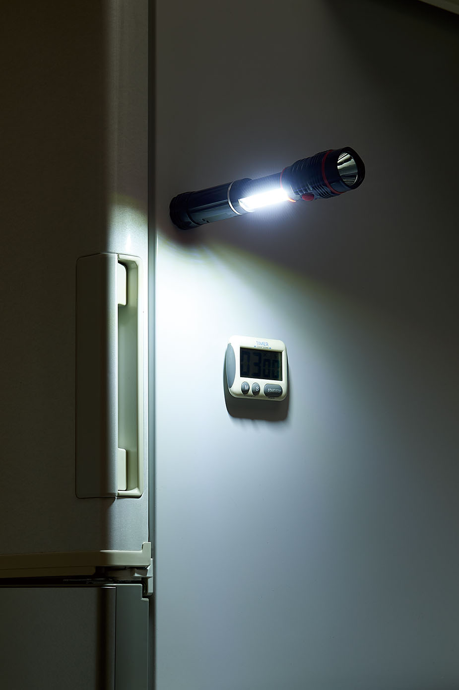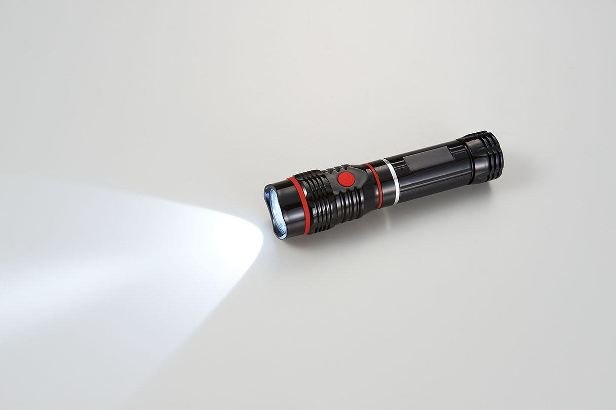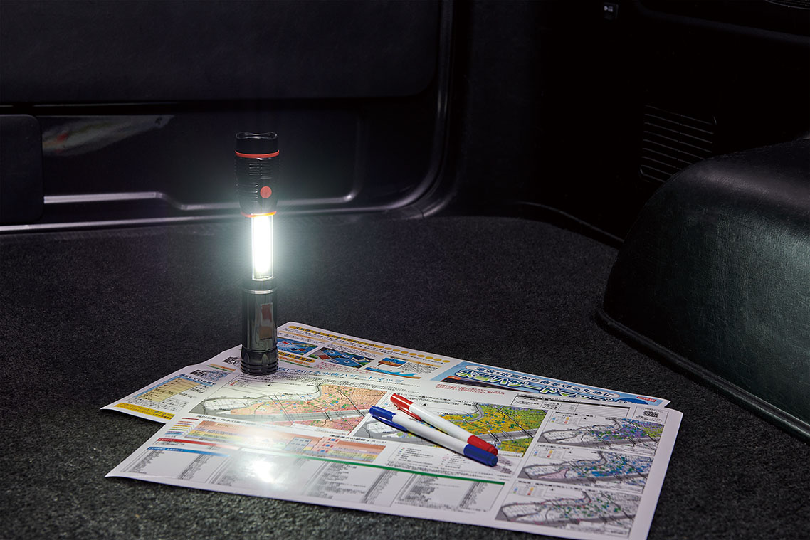 災害時に役立つスリムライト。ハンディライトとして使用できるほかに強力磁石付なのでスチールなどの壁に固定でき、COBライトでランタンとしても使用できる2WAY。