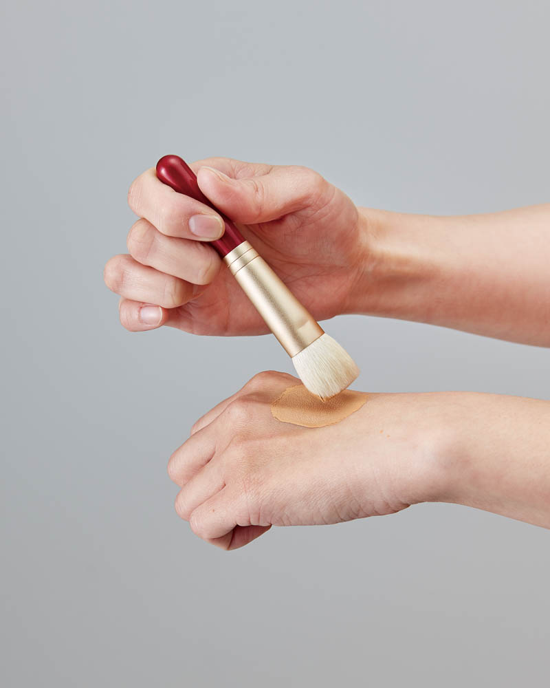 世界に誇る熊野の化粧筆。穂先をカットしない熊野の化粧筆は、穂先がやわらかくやさしいので肌触りが違います。メイクのノリや持ちも断然違う逸品です。